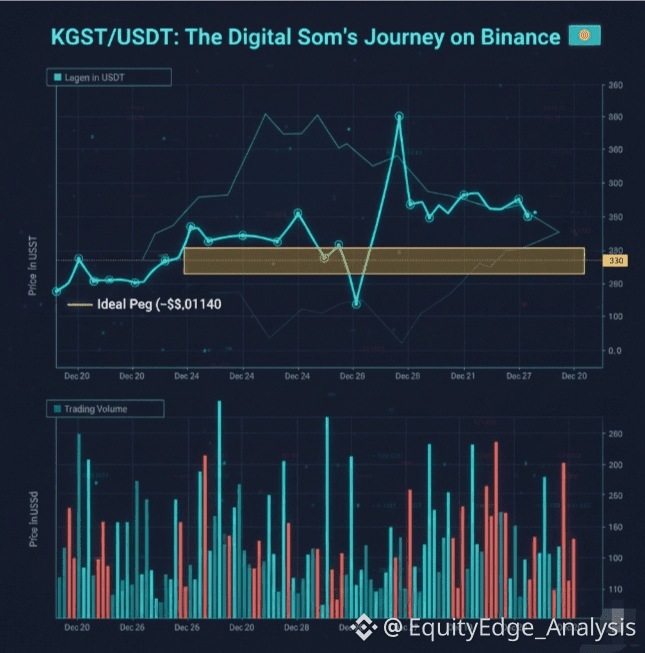 The Binance Debut: Following its high-profile listing, KGST saw a characteristic "listing pump," briefly soaring to $0.0121—a notable 6% premium over its intended peg. This initial frenzy signals immense interest.