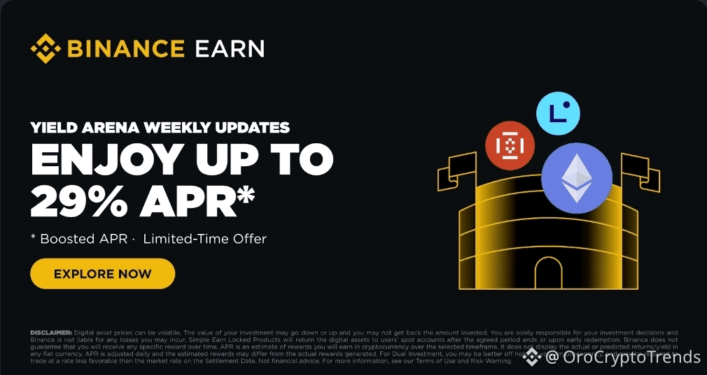As 2025 wraps up, Binance Earn is rolling out some solid short-term yield deals in its Yield Arena. You’ll find options like Simple Earn, on-chain staking, Dual Investment, and ETH or SOL staking. If you’re after passive rewards but still want to manage your risk, these could be worth your attention.