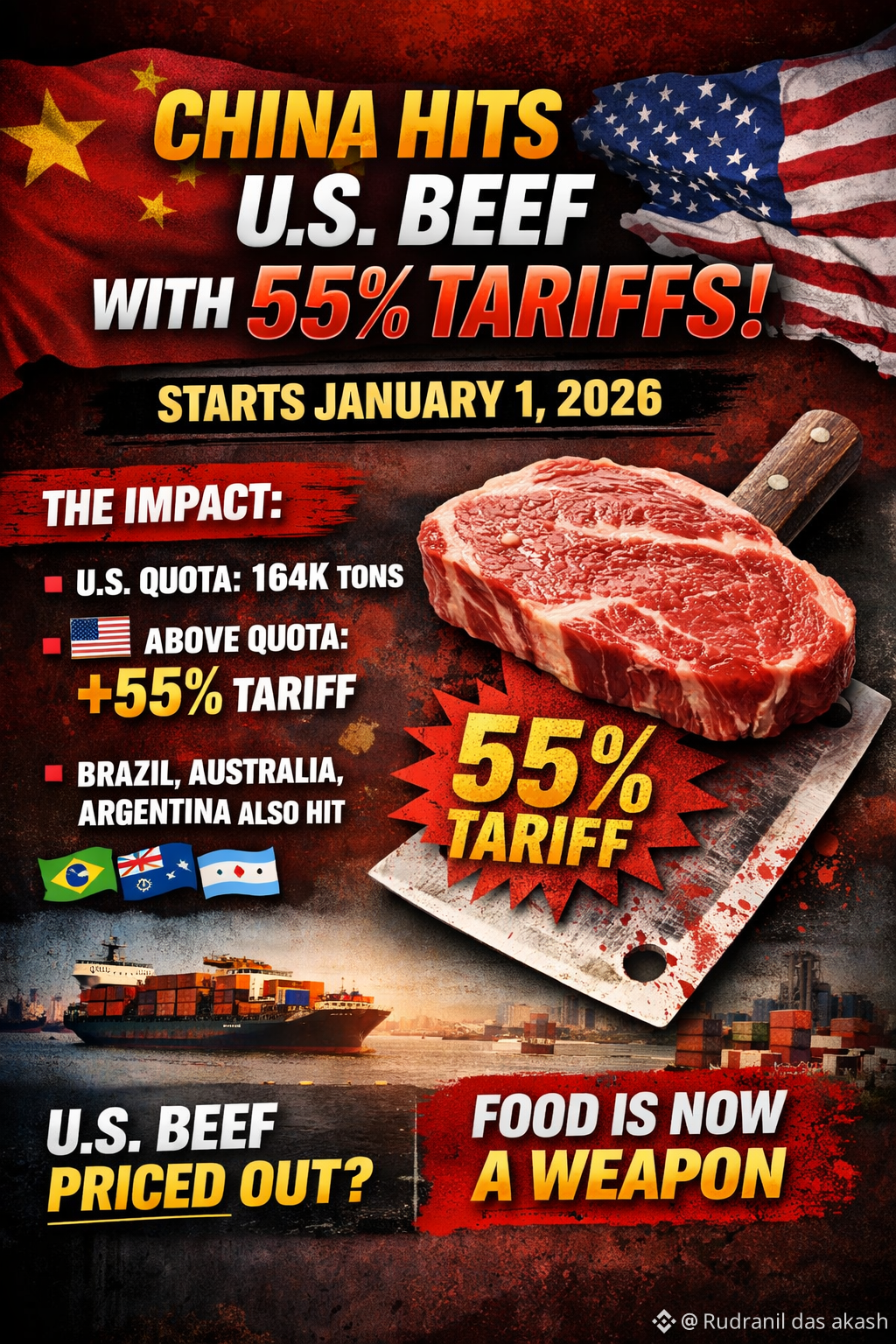 🚨 CHINA JUST HIT U.S. BEEF WITH 55% TARIFFS