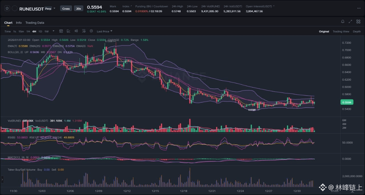 At present, RUNE is navigating a tightly defined horizontal range. This phase of sideways movement, known as consolidation, follows a notable distribution period that began in the second week of December. During that phase, the price declined from a local high of approximately 0.7200, establishing a clear downtrend characterized by a series of lower highs and lower lows. The market has since found a temporary floor, with price oscillating in a narrow band. This equilibrium indicates a momentary balance between buyers and sellers, but such periods of indecision are inherently unstable. The core question for analysts is whether this consolidation is a pause before the next leg down (a bearish continuation pattern) or a base-building phase for a potential reversal (accumulation). The indicators and price action provide clues to which outcome is more probable.