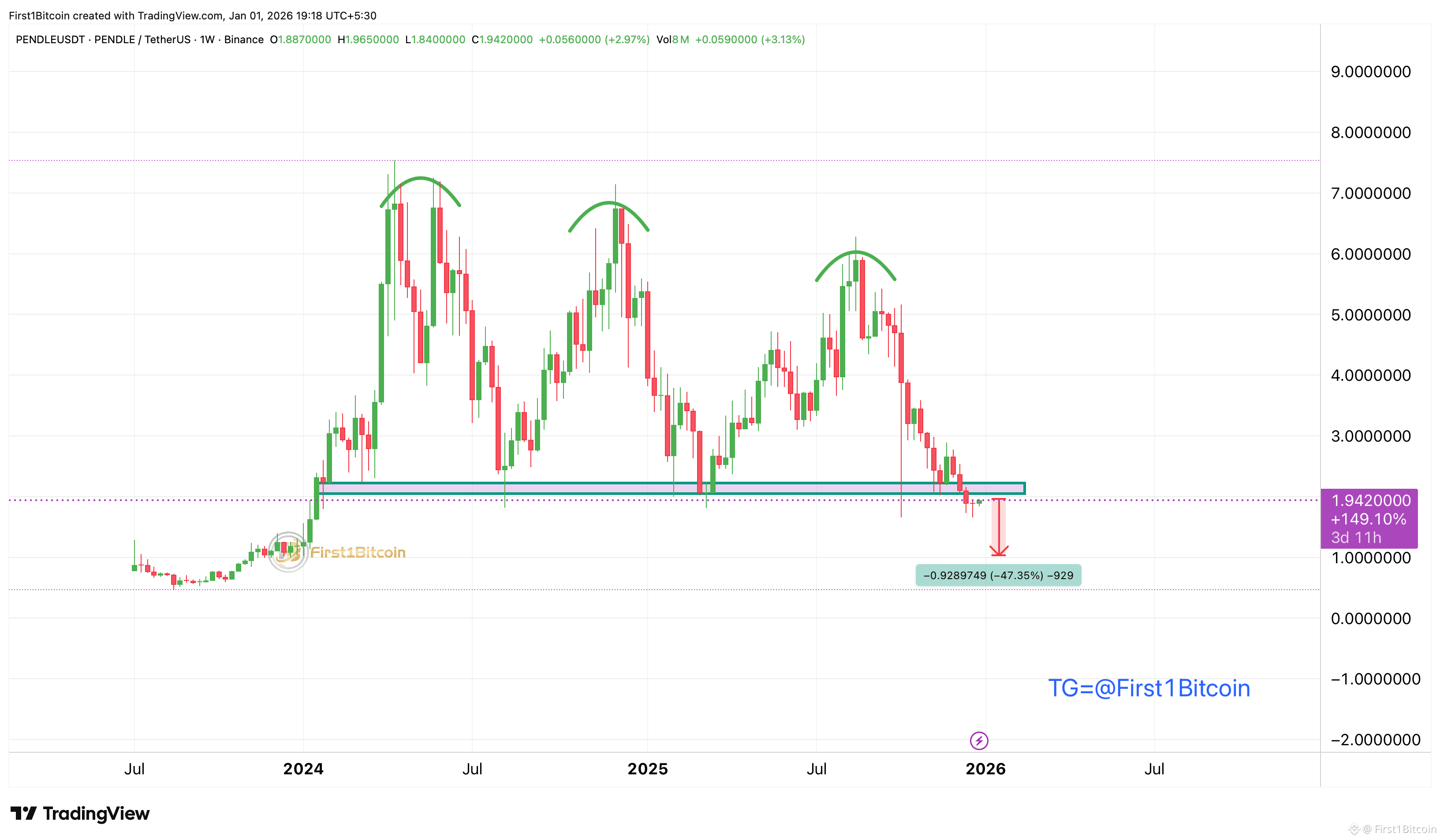 #PENDLE has printed a clear series of lower highs, forming a distribution pattern after the strong 2024–2025 rally.