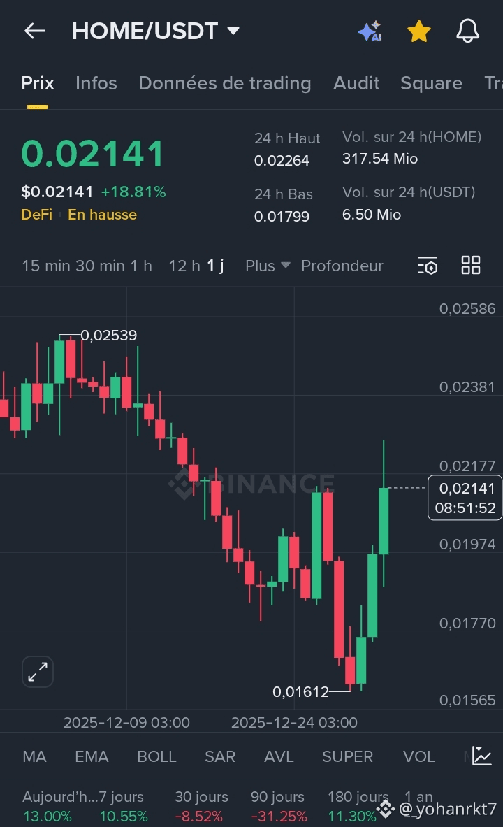 * Prix Actuel : Le jeton HOME (Defi App) s'échange autour de 0,0189 $.