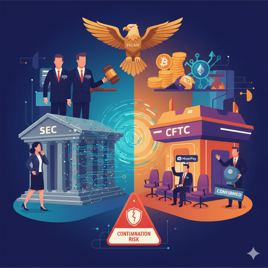 A Comissão de Negociação de Futuros de Commodities dos EUA (CFTC), outro órgão-chave na supervisão de ativos digitais, enfrenta um cenário semelhante de indefinição na liderança. Embora o indicado de Trump, Michael Selig, tenha sido confirmado pelo Senado como presidente antes do recesso de fim de ano, ele permanece como o único comissário ativo, com quatro cadeiras ainda vagas. Já Caroline Pham, que ocupava a presidência interina da CFTC desde janeiro, deixou o cargo logo após a confirmação de Selig para assumir uma posição executiva na empresa cripto MoonPay.
