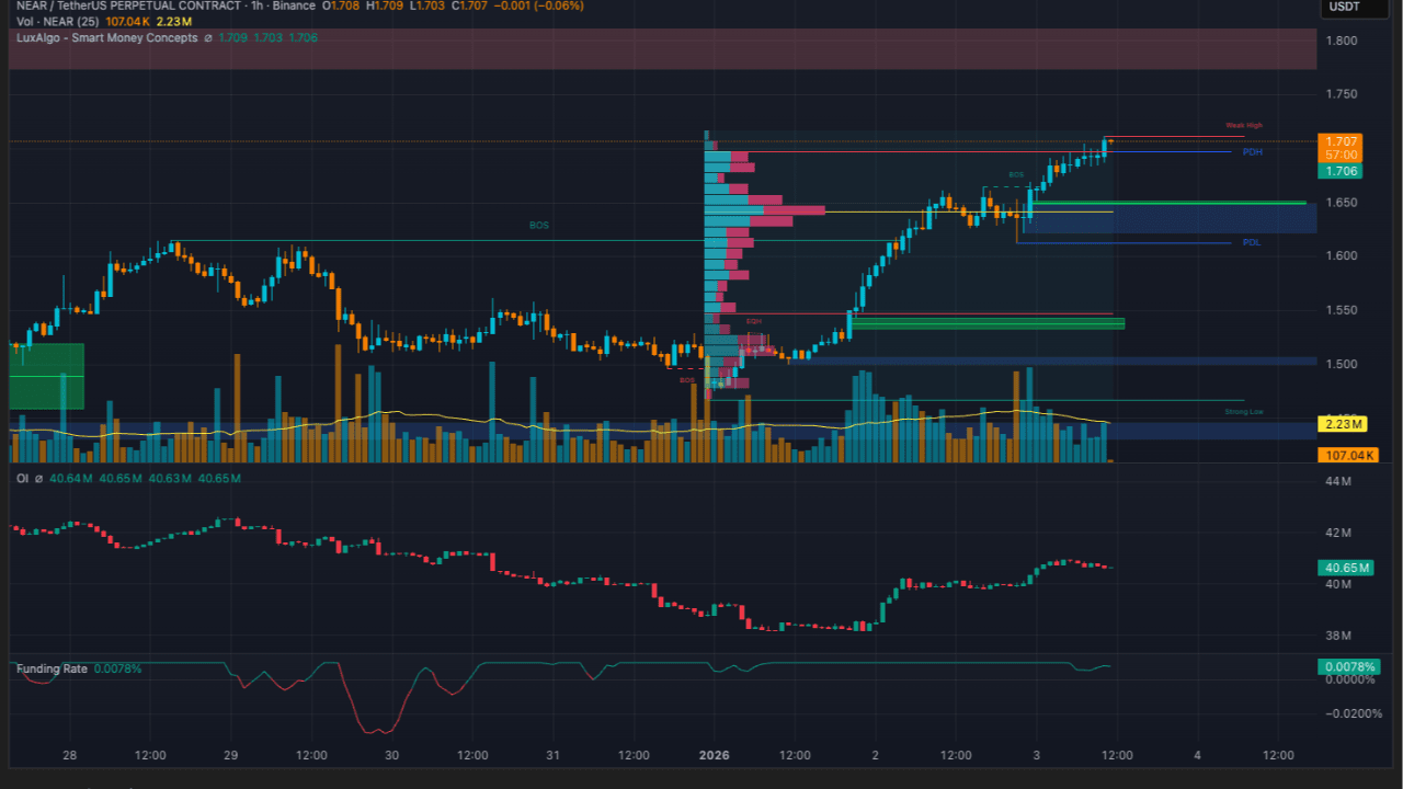 NEAR se tranzacționează încă într-o structură de piață bullish clară pe 1H.