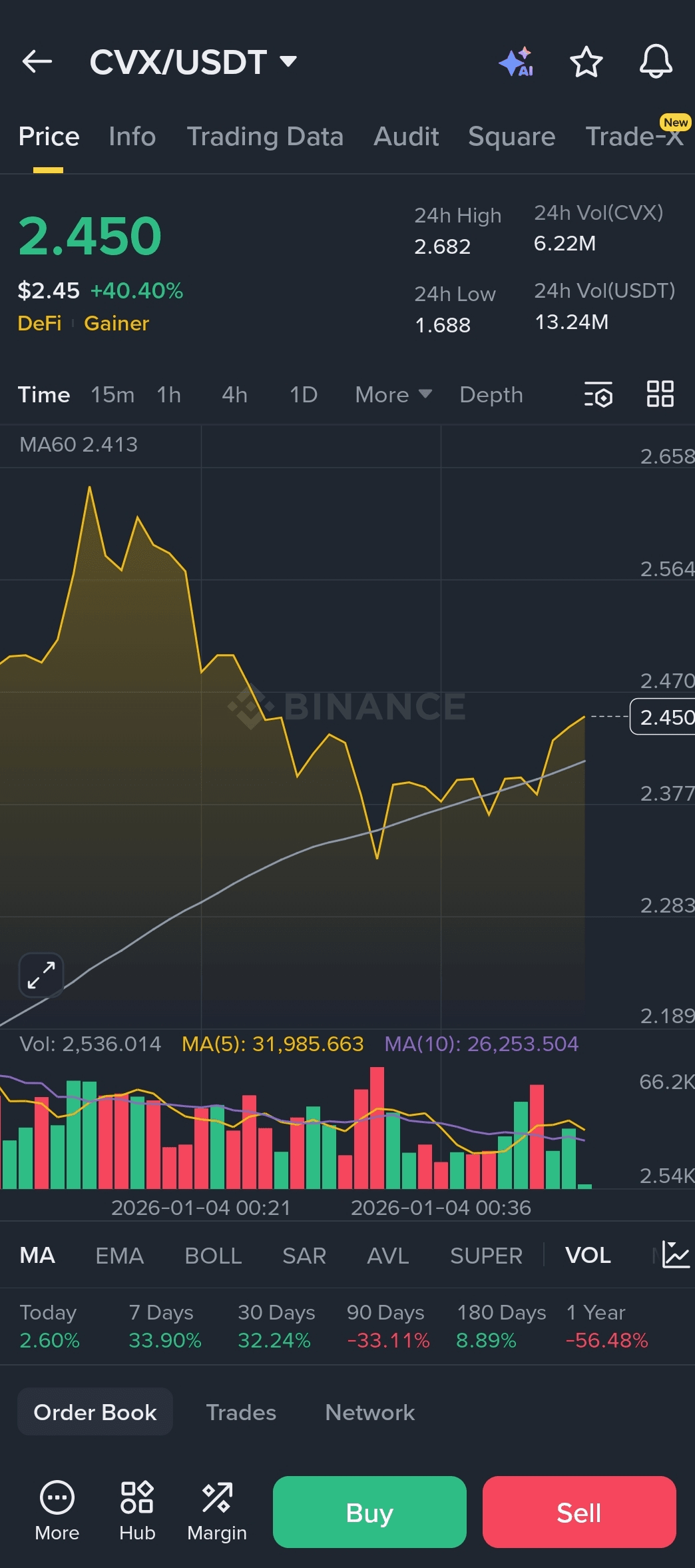 💧 Lichiditate puternică pe perechea Binance CVX/USDT