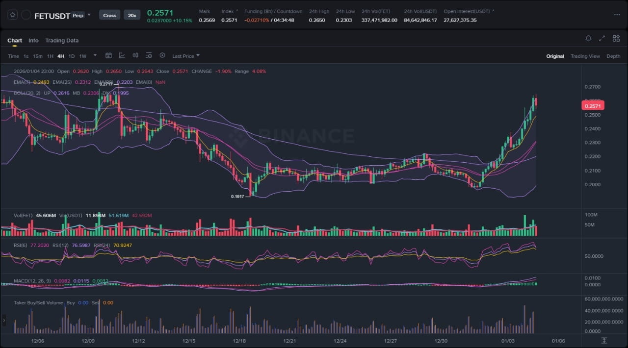 Prima temă — momentum-ul acțiunii prețului (optimist): Raportul Blockonomi din 4 ianuarie detaliază creșterea de 20% a FET care a rupt seria bearish de 6 luni, cu prețul stabilizându-se în jurul valorii de $0.26 în mijlocul schimbării structurii tehnice și comportamentului pieței pe termen scurt. Articolul Currency Analytics din 11 decembrie notează o creștere de 11% până la 10 decembrie, atrăgând atenția investitorilor în ciuda riscurilor de volatilitate. Acest lucru întărește narațiunea de breakout a graficului, sugerând că faza de distribuție ar putea fi încheiată.
