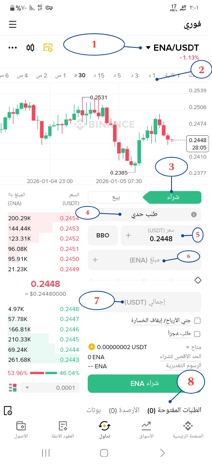 🔢 Explicație numere din imagine (interfață Spot – Binance)