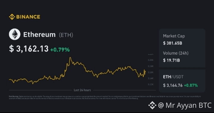 $ETH is trading around ~$3,150–$3,170 and recently broke above resistance levels near $3,140–$3,200, showing positive short-term momentum. �