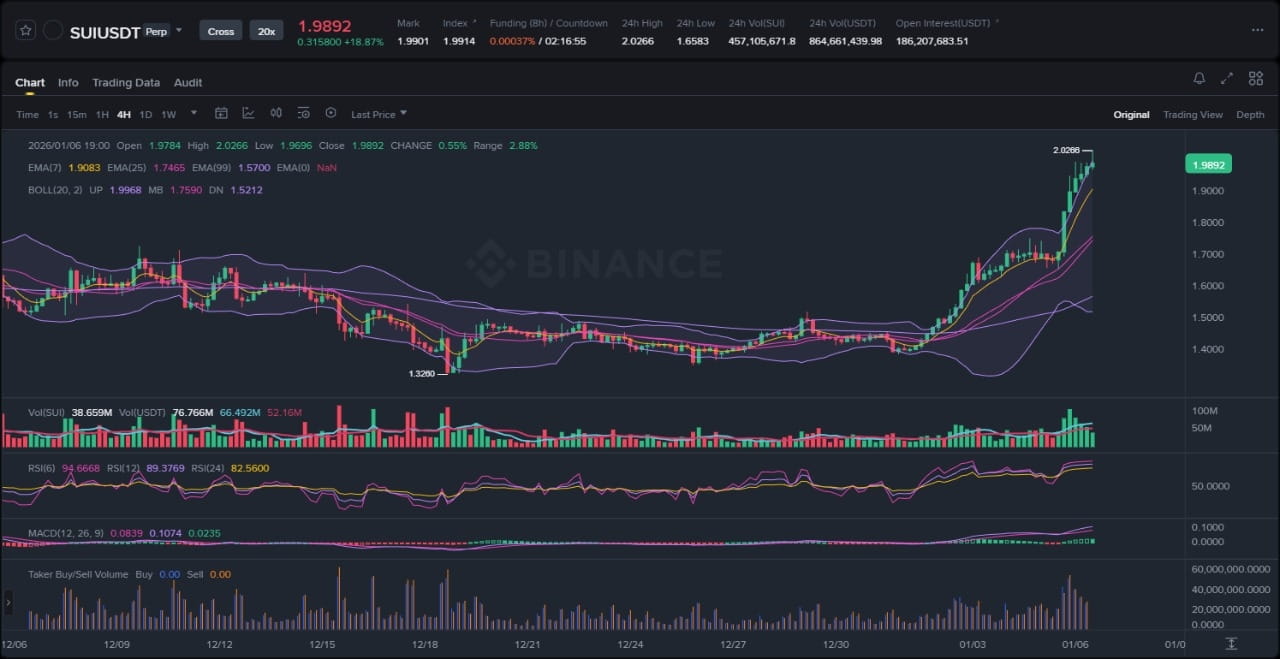 SUI, tokenul nativ al blockchain-ului Sui cu performanță ridicată, a atras atenția traderilor de cripto în contextul unei creșteri generale a pieței. În data de 6 ianuarie 2026, activul arată o acțiune puternică a prețului, cu datele recente indicând o posibilă testare a nivelurilor psihologice de rezistență. Această analiză explorează structura tehnică prin graficul oferit, integrează informații din cele mai recente știri, și outlinează scenarii probabilistice pentru continuarea sau inversarea tendinței, totul însoțit de puncte cheie de monitorizare pentru o observare informată.