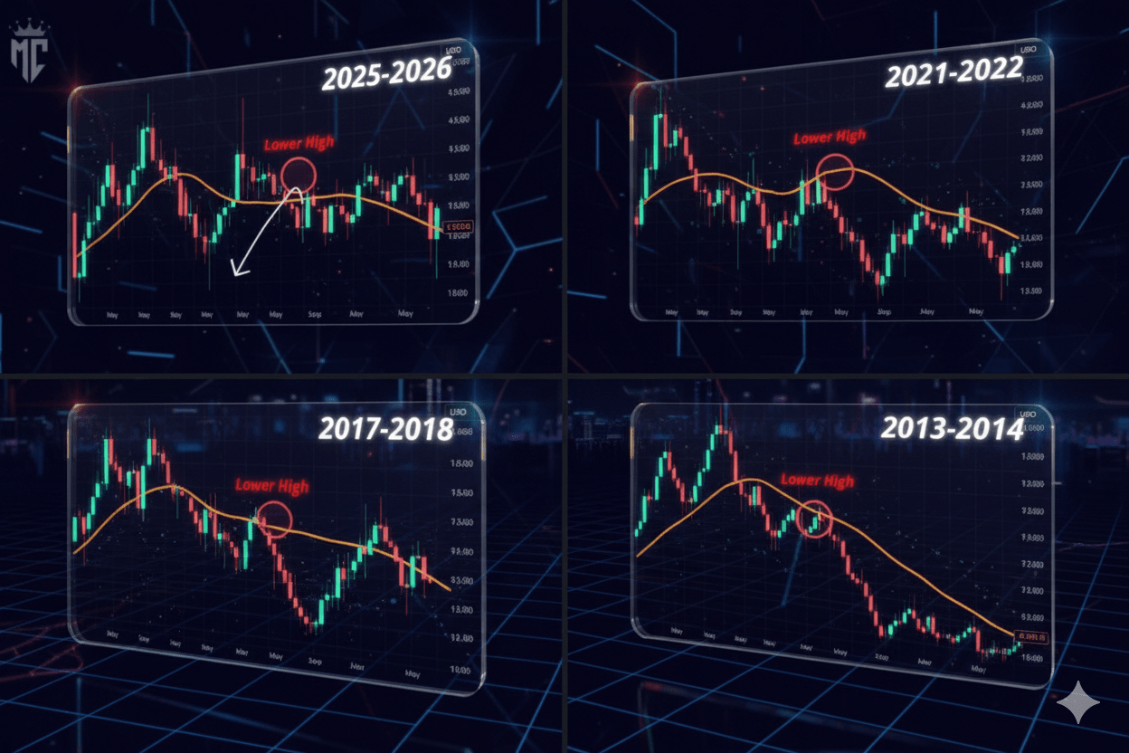 Dacă Bitcoin testează din nou media mobilă de 200 de zile în timpul unui an intermediar, scepticismul este justificat. Ignorarea acestei combinații s-a dovedit a fi costisitoare în ciclurile anterioare.