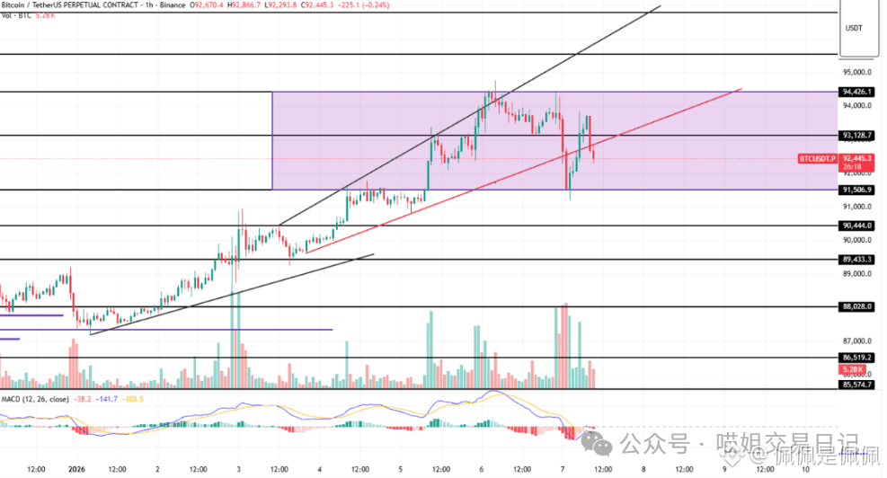 2)价格回调到90000-91000附近测试支撑可以找机会做短多