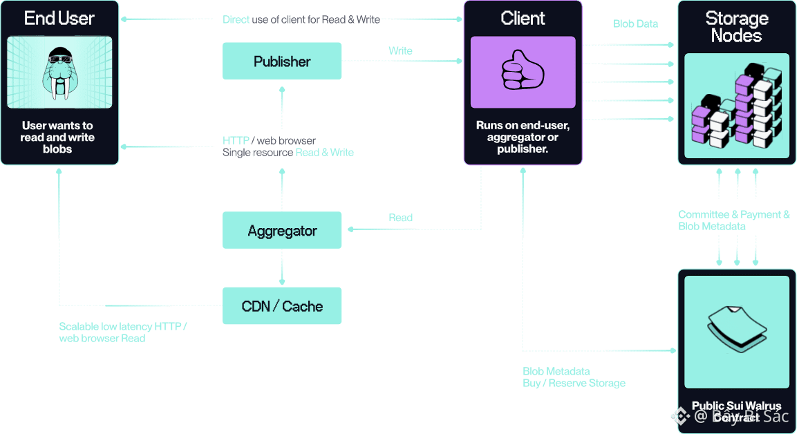 Cấu trúc này giúp Walrus duy trì hiệu suất cao, tăng tính bảo mật và tránh phụ thuộc vào một điểm lưu trữ duy nhất.
