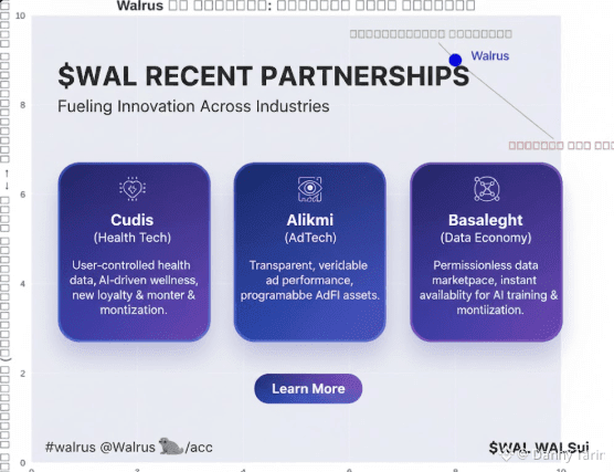 Walrus Protocol ($WAL) is steadily redefining how data is stored, accessed, and monetized across multiple industries. Its recent strategic partnerships with Cudis, Alkimi, and Baselight highlight the protocol’s growing influence and practical utility in real-world applications. Each collaboration demonstrates a distinct use case where decentralized storage and verifiable data unlock new opportunities for users and businesses alike.