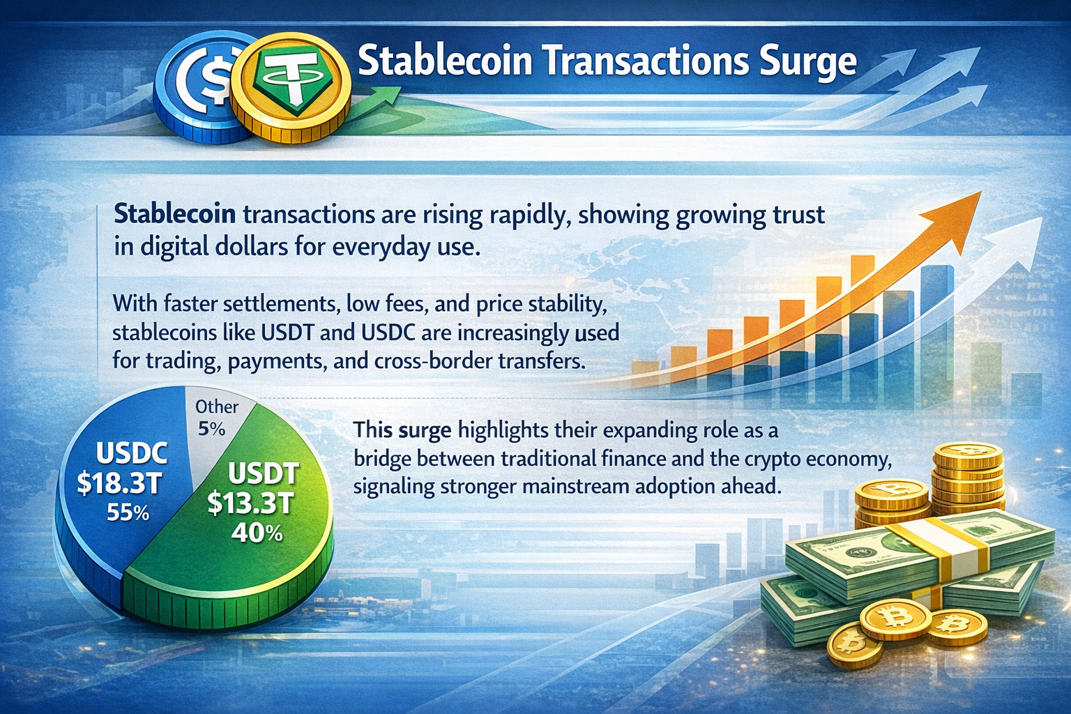 Tranzacțiile cu stablecoin cresc rapid, arătând o încredere crescută în dolarii digitali pentru utilizarea zilnică. Cu achitări mai rapide, comisioane mici și stabilitatea prețurilor, stablecoin-urile precum USDT și $USDC sunt folosite din ce în ce mai des pentru tranzacții, plăți și transferuri internaționale. Această creștere subliniază rolul lor în creștere ca pod între finanțele tradiționale și economia cripto, semnalând o adoptare mai largă în viitor.$BTC