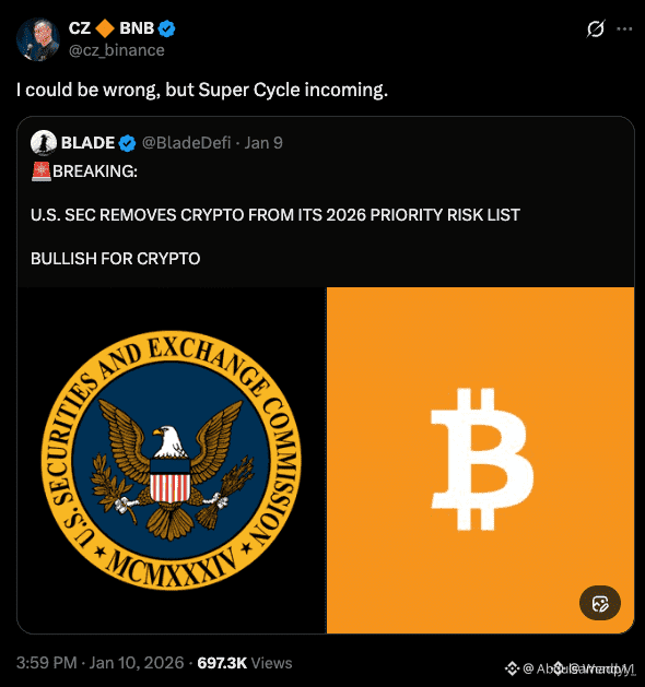 šŗšø The U.S. SEC has officially removed crypto from its 2026 priority risk list