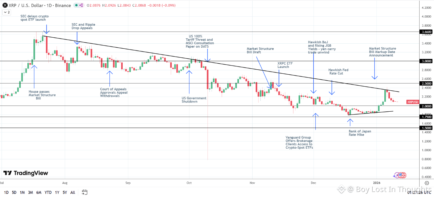 Primary Risks: A hawkish shift from the Bank of Japan, delayed Fed rate cuts, partisan challenges to crypto legislation, or a reversal in XRP ETF inflows could threaten the bullish outlook.