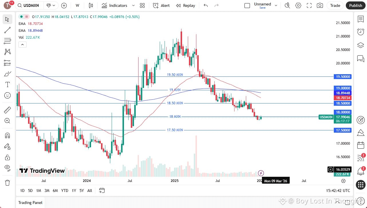 Key Levels: 18.00 is strong resistance, with 18.50 as an absolute ceiling.