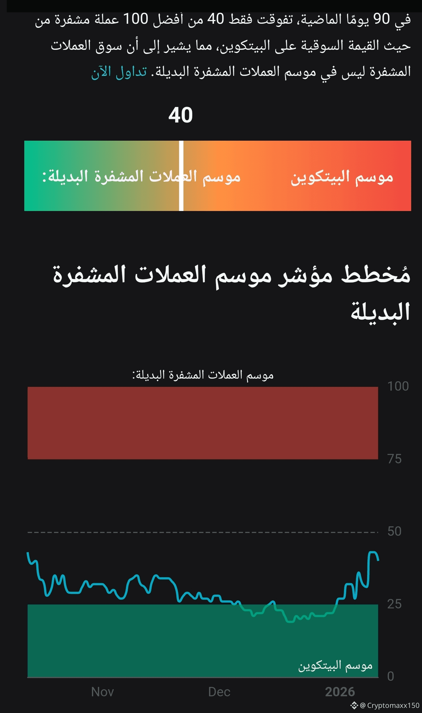 • قيمة 40 تعني أن السوق ليس في Altseason كاملة.