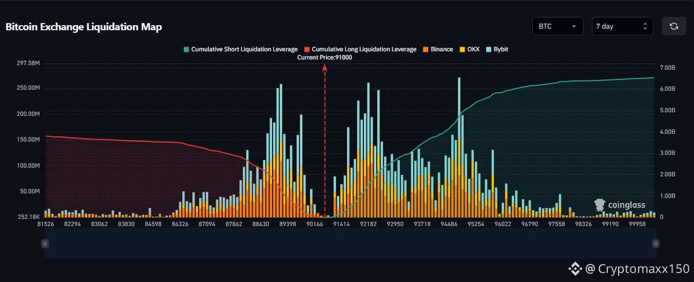 • تكدّس واضح لمراكز بيع (Shorts) فوق السعر الحالي.