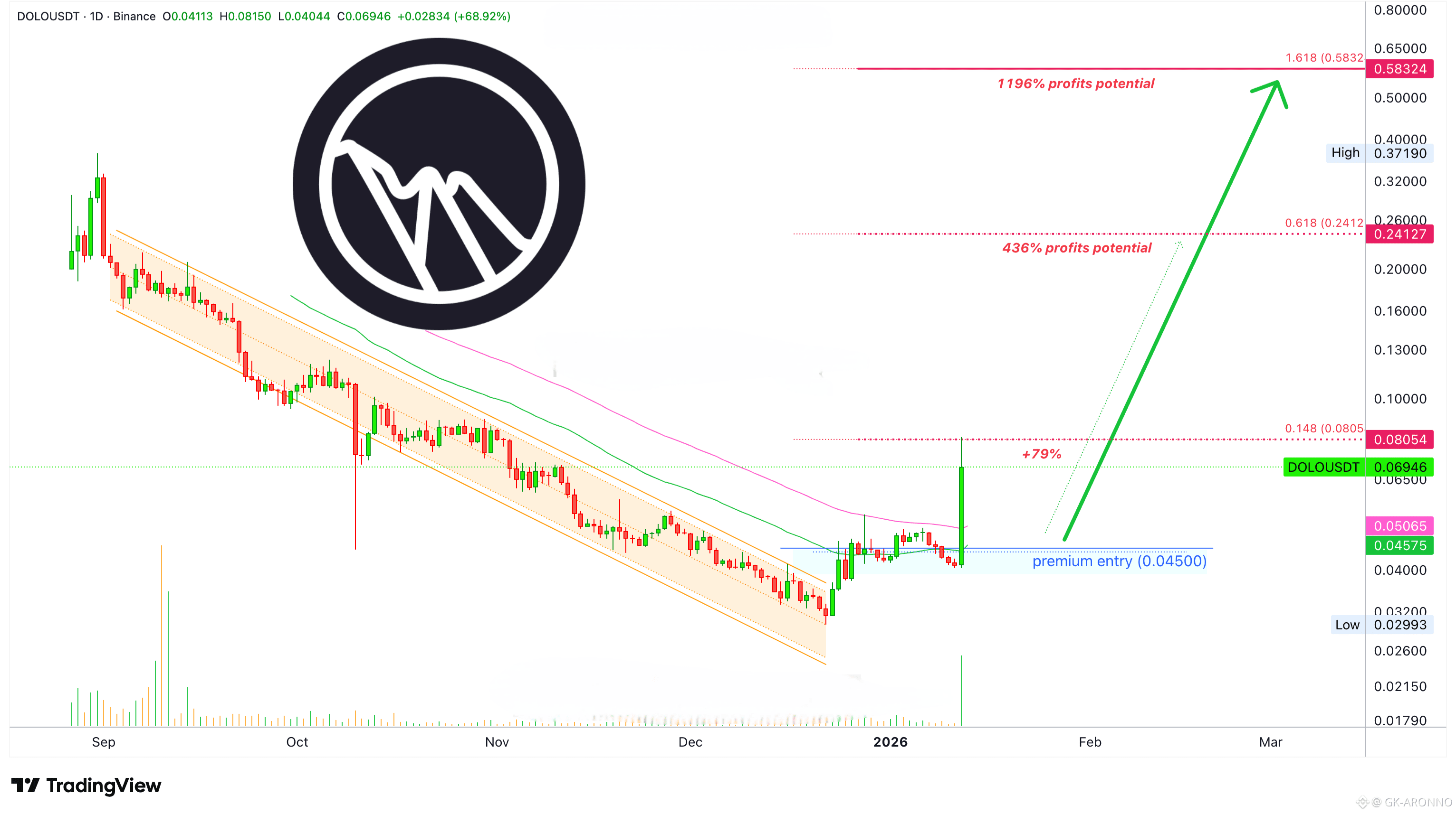 Dolomite can easily grow 436% total in the coming weeks as a continuation of the recent breakout. If this breakout can produce 100% in a single day, it wouldn't be wild to think that ~400% is possible this month. But there is more.