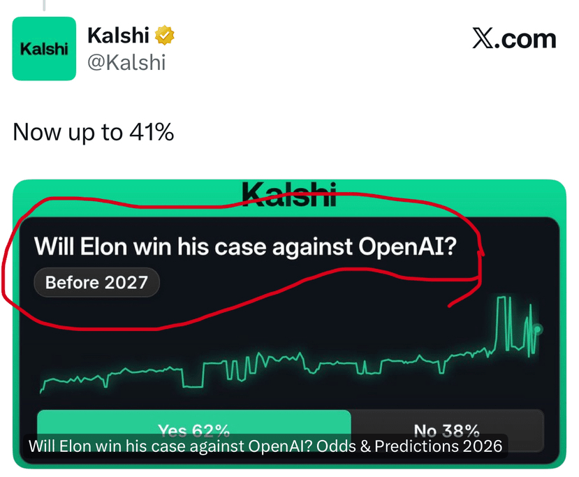 • Piețele cred că șansele sale cresc (oamenii pariază mai mult pe "Da" după decizia judecătorului + postarea lui Elon).