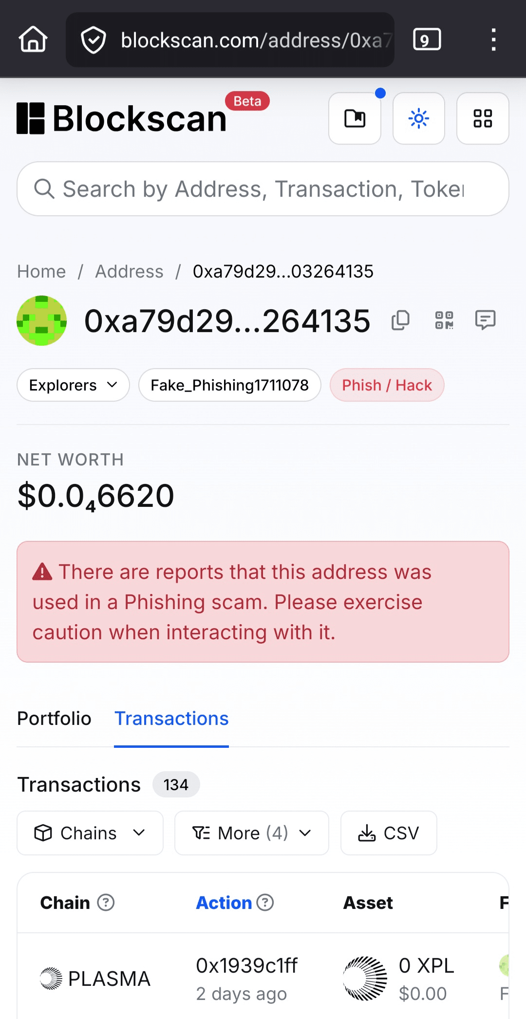 Now, after reviewing the senderās address transactions and the addresses that funded it, I found a large number of wallets sending phishing tokens.