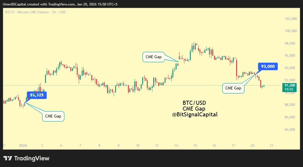 Intervalul CME de $93,000 are o probabilitate foarte mare de a fi umplut pe termen scurt. Intervalele CME proaspete sunt adesea umplute în termen de 24–72 de ore, iar acțiunea actuală a prețului arată BTC plutind aproape de această zonă.
