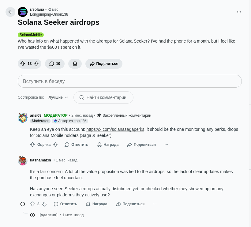 Solana Seeker promovează airdrop-urile nu ca „bani gratuiti”, ci ca recompense pentru activitatea regulată în Web3. În practică, aceasta înseamnă instalarea de dApp-uri, acțiuni on-chain și participarea în ecosistemul Solana. Majoritatea drop-urilor sunt tokeni nelichizi sau#NTF cu o valoare îndoielnică. Randamentul real este posibil, dar necesită timp și atenție, fără a oferi garanții de rentabilitate: pentru majoritatea utilizatorilor, cheltuielile de timp depășesc rezultatul.