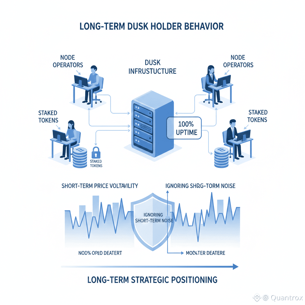 That behavior is unusual for altcoin speculation. Normal pattern is: buy the rally, sell the first signs of weakness, move to the next momentum trade. Dusk holders aren't doing that. They're sitting through drawdown that would normally trigger exits. Either they're all new to trading and don't know when to cut losses, or they're positioned for something beyond short-term price movements.
