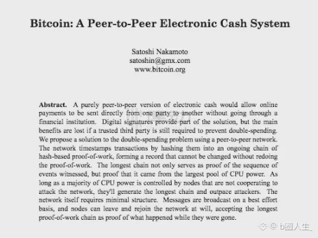 2008 年 11 月,一份署名中本聪的论文被发表在网络上,其标题为《比特币:一种点对点的电子现金系统》(Bitcoin: A Peer-to-Peer Electronic Cash System)。论文中详细描述了如何使用对等网络来创造一种「不需依赖信任的电子交易系统」。
