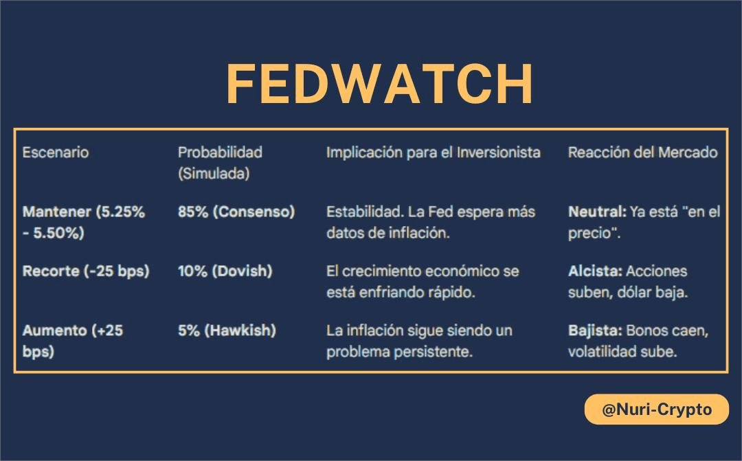 1. Divergencia: Si FedWatch dice 90% "Mantener" pero la Fed sube la tasa, prepárate para un terremoto en los mercados (caídas bruscas), porque el mercado no estaba listo.