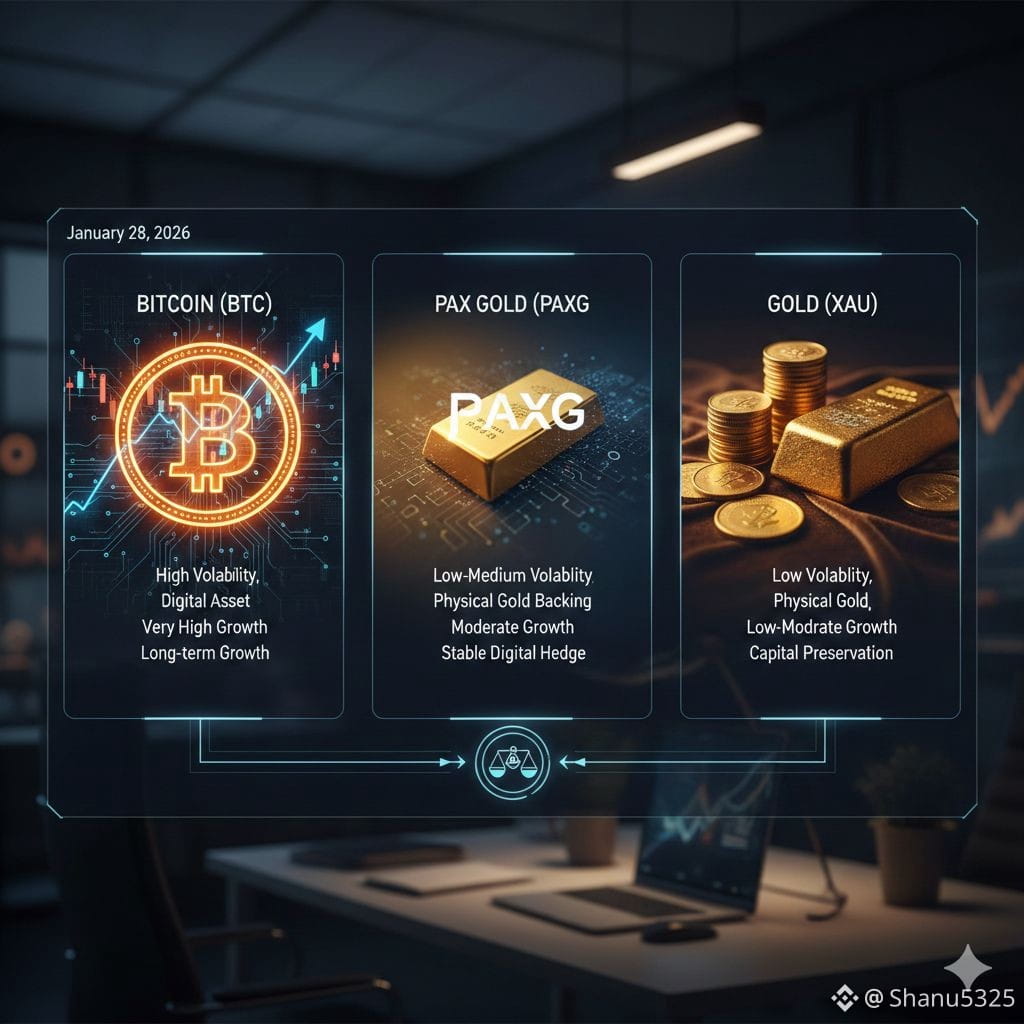 In today’s evolving financial landscape, investors are increasingly diversifying their portfolios beyond traditional assets. Cryptocurrencies and digital commodities have emerged as strong alternatives to fiat-based investments. Among these, Bitcoin ($BTC ), PAX Gold $PAXG , and Gold ($XAU ) stand out as popular stores of value. Each asset serves a different purpose, carries unique risks, and responds differently to global economic conditions.