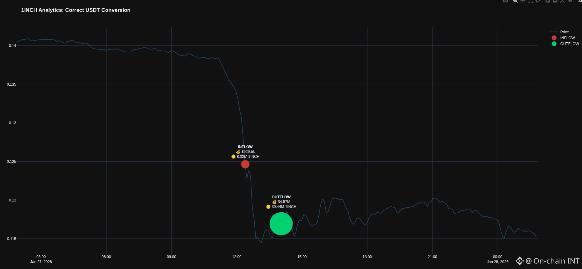 $1INCH ($4.5M) — ВТЕЧА: Хтось вивів величезну гору монет у "холодний підвал". Продавати не збираються, чекаємо на ракету?
