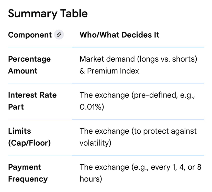 Schimburile crypto (de exemplu, Binance, Bybit, Coinbase) stabilesc formula, componenta ratei de interes și frecvența plăților, dar în general nu stabilesc manual rata zilnică pe baza opiniei.