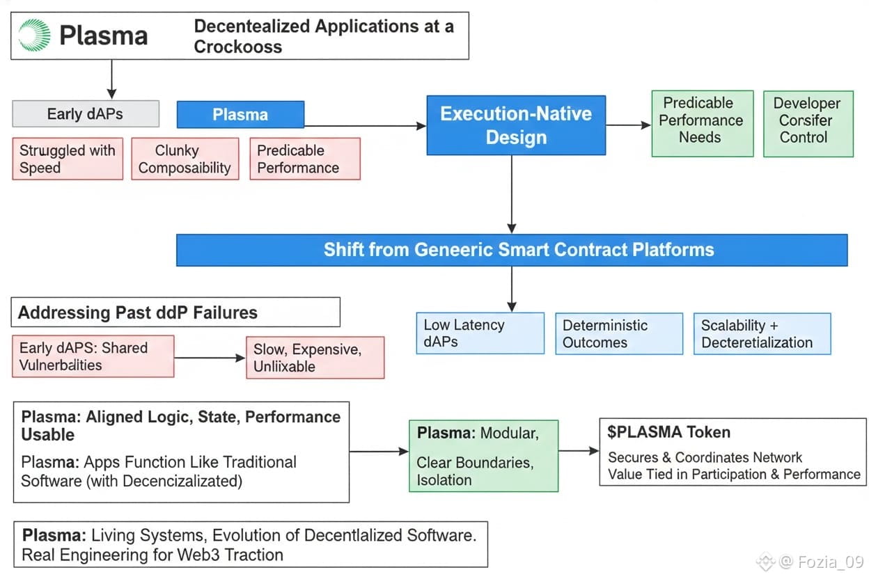 Decentralized applications have hit a crossroads:infrastructure isn’t just a background concern anymore it’s the heart of the whole thing.Early dApps showed everyone that decentralization could work, but at a cost.They struggled with speed, composability,and control.Plasma approaches these problems from a different angle.Instead of treating execution as an afterthought,it puts it front and center.This shift is what makes Plasma stand out in the next wave of decentralized app development.