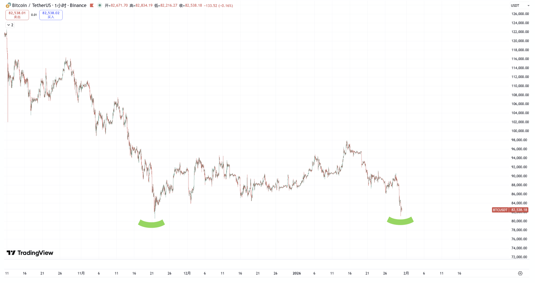 1. Așa cum se arată în imagine, Bitcoin a căzut la un suport de 81.000, aici fiind finalul scăderii anterioare, formând un dublu fund, având o probabilitate bună de a rebounda puțin. Și apoi? Va continua să scadă?