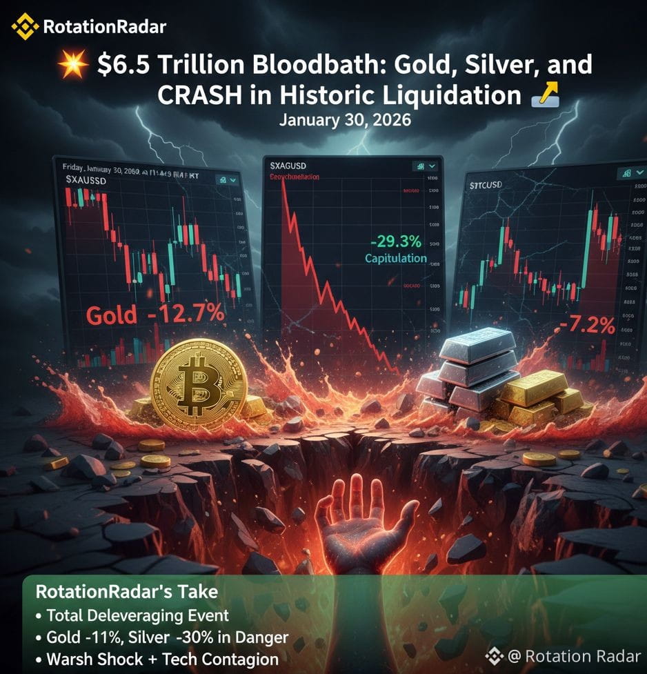 Global markets have just witnessed a financial earthquake. In what traders are calling a "Total Deleveraging Event," more than $6.5 trillion in wealth has been erased in a single 24-hour window. The crash spared no one, as the red-hot "Safe Haven" trade in metals and the "Digital Gold" narrative in crypto both collapsed simultaneously.