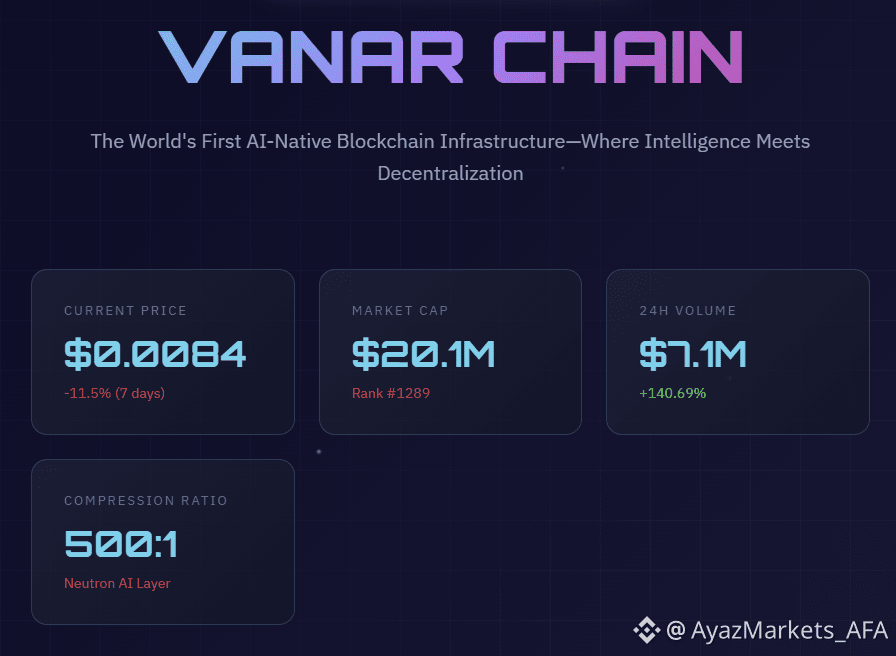 VANAR Chain is building genuinely novel infrastructure in the AI-blockchain intersection. The Neutron compression layer and Kayon reasoning engine solve real problems—centralization risks, storage limitations, and AI agent memory—that most chains ignore. But breakthrough technology doesn't guarantee market success. Right now, VANAR is a speculative bet on whether AI-native blockchains become essential infrastructure or remain a niche curiosity. The price reflects deep skepticism. The roadmap suggests long-term vision. Only adoption will tell the story.