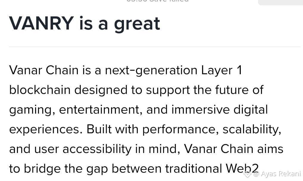 Vanar Chain is a next-generation Layer 1 blockchain designed to support the future of gaming, entertainment, and immersive digital experiences. Built with performance, scalability, and user accessibility in mind, Vanar Chain aims to bridge the gap between traditional Web2 platforms and the decentralized@Vanar #VANREY