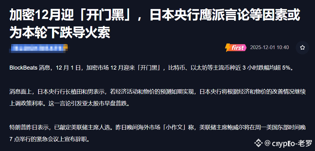 1. 逻辑核心:不确定性即利空。无论是日本超预期转向紧缩,还是美联储领导层可能更迭并被迫政治化,都在增加全球宏观环境的复杂性。加密货币市场在传统金融市场剧烈波动时,很难独善其身,往往表现为风险规避资产,跟随下跌。