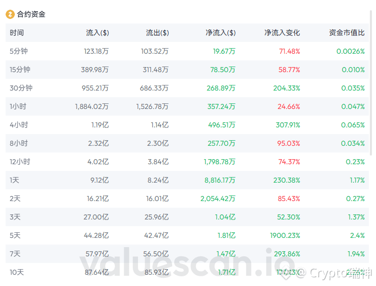 这组资金数据才是真正的“王炸”。从5分钟到10天,所有时间维度的合约资金净流入全部为正,且呈现加速流入态势。这说明无论短期波动如何,聪明钱正在用真金白银持续押注ZEC的未来。尤其是在价格小幅回调时,资金反而加大流入,这往往是典型的“逢低吸筹”动作,而非出货。大资金的耐心布局,往往预示着后续将有更大的行情爆发。