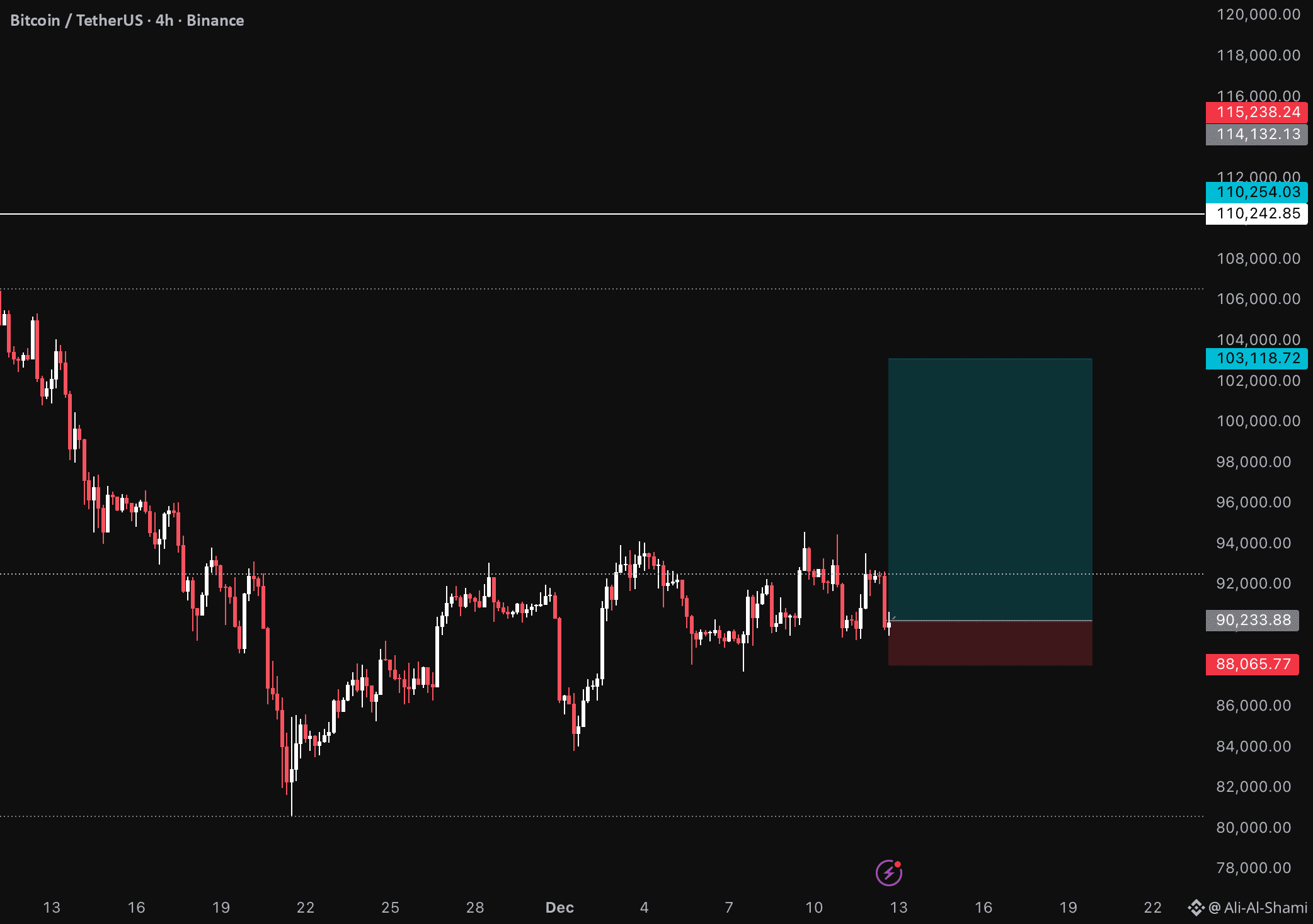 • ابحث عن تراجعات إلى منطقة الدعم (89k–90k) مع حجم رفض صعودي.