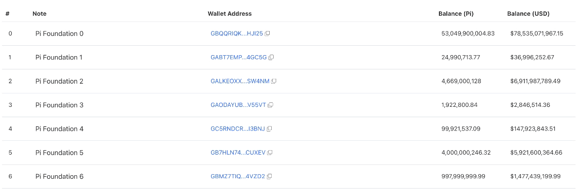 Последние данные показывают, что центральная команда сети Pi контролирует около 62,8 миллиарда Pi Coins, распределенных на шести кошельках. Кроме того, около 20 миллиардов PI находятся на примерно 10 000 незарегистрированных кошельках, принадлежащих команде.
