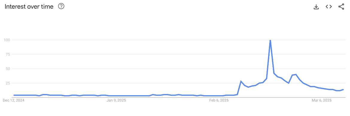 Это недовольство привело к резкому снижению популярности сети Pi. Согласно Google Trends, интерес к поиску "Pi Network" значительно уменьшился с момента запуска основной сети 20 февраля.