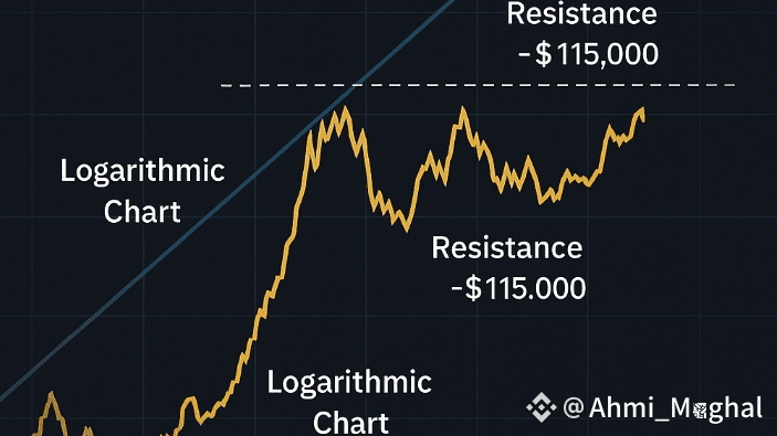 На логарифмическом графике та же трендовая линия теперь указывает на возможный уровень сопротивления около $223,000 — значительно выше отметки $115K на линейном графике. Поскольку Биткойн следовал сильному, экспоненциальному росту в прошлых бычьих рынках, многие считают, что этот более высокий уровень может быть более реалистичным.