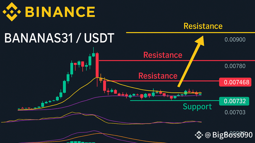 Монета $BANANAS31 продемонстрировала волатильные движения за последние часы, увеличившись на +9.07%, достигнув своей текущей цены 0.007468 USDT после достижения дневного максимума 0.009000 USDT.
