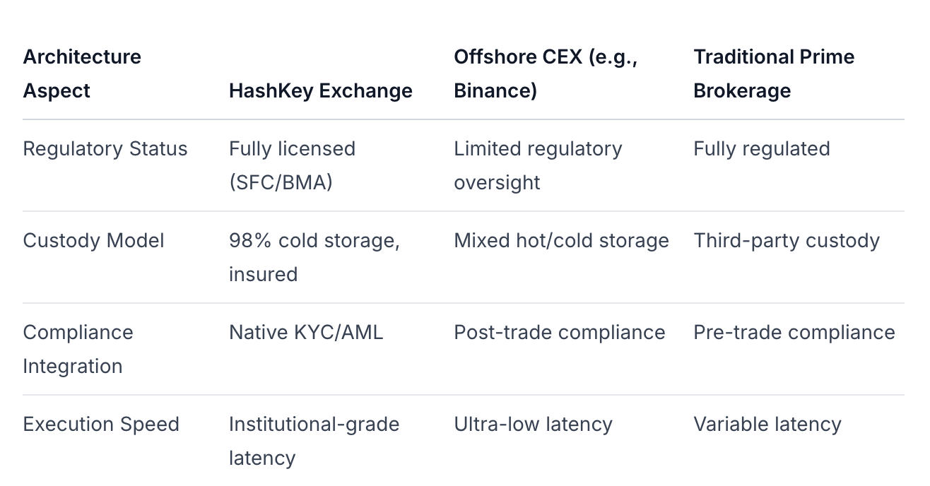 HashKey Exchange использует сложную архитектурную модель, которая приоритизирует соблюдение регуляторных норм и инфраструктуру на уровне институциональных стандартов над чисто техническими инновациями.