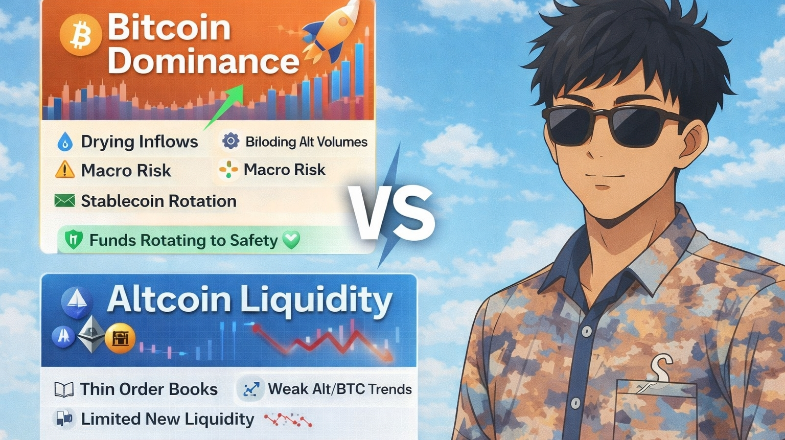 С макроэкономической точки зрения, с ожидаемой более жесткой ликвидностью и отсутствием новых катализаторов рисков, средства сначала идут в BTC. Пока в систему не будет введена свежая ликвидность, рост альткоинов будет краткосрочным по своей природе, и их будут распродаживать.