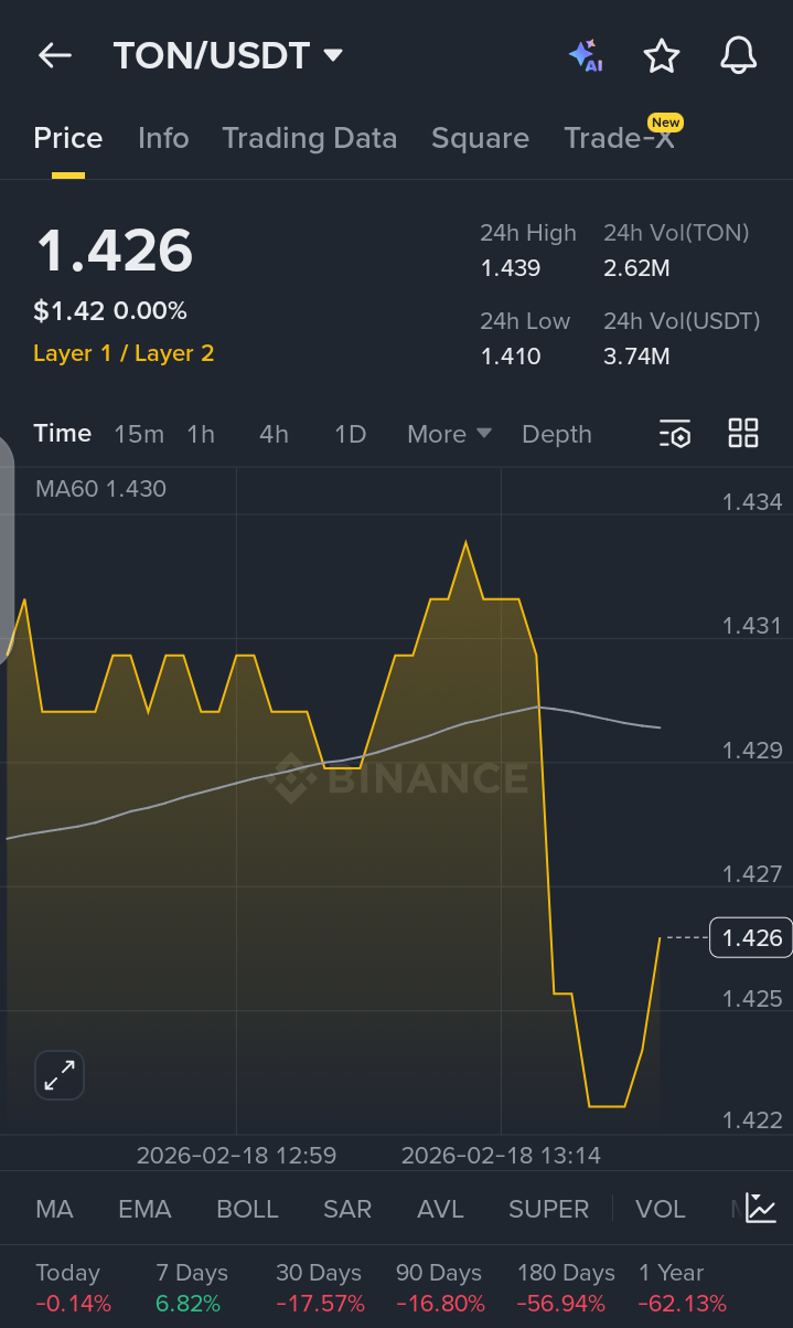 TON был исключением, показывая гораздо более низкую относительную волатильность по сравнению с более широким рынком. В последнее время он находился в фазе консолидации, торгуясь около отметки $1.40.