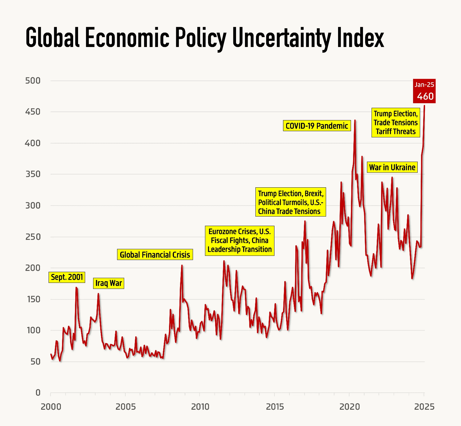 The Global Economic Policy Uncertainty Index reaching 460 is more than a statistic — it’s a warning sign.